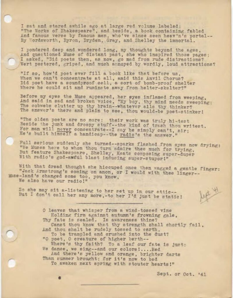 So she may sit a-listening to her set up in our attic– But I don’t call her any more, -to her I’d just be static!