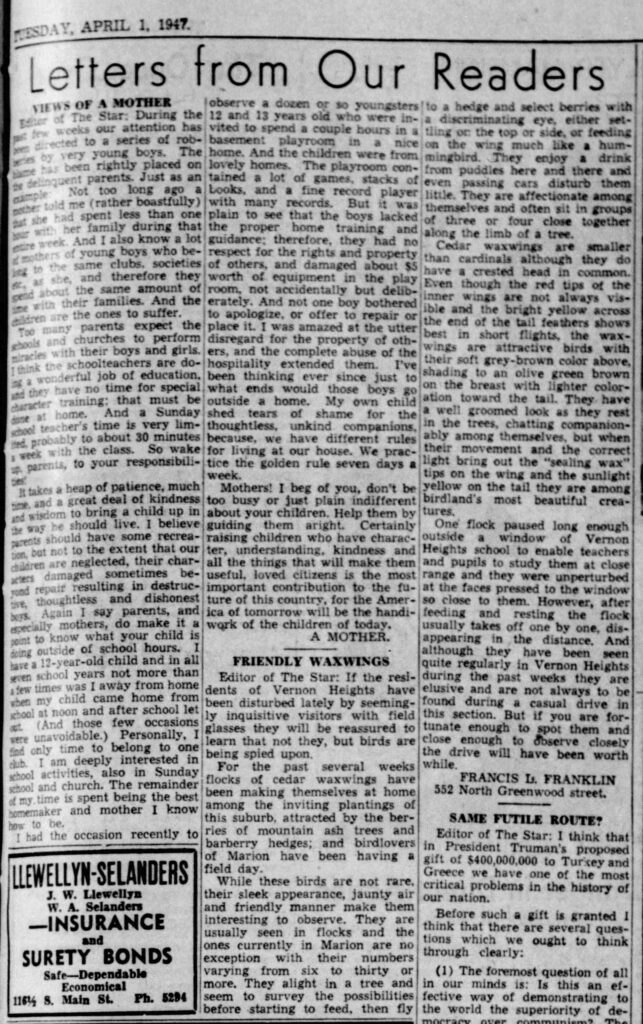 Mother is getting all the phone calls & it’s hard to turn down all those orders. I called Smith & Young at noon & ordered 2 doz more gardenias & then started taking orders on them again. Had planned to play ping pong with Romines but Ray called at 6 suggesting we go to Galion – had a letter from Hazel Chase inviting us. So Wally & Flo decided to go skating – leaving Sandra here with our kids & Delores.