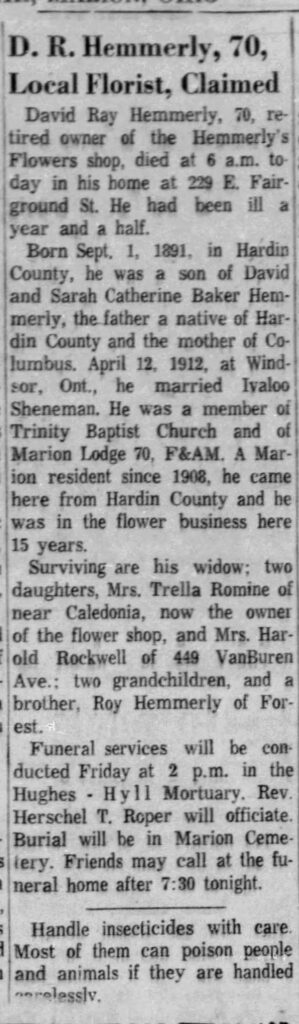 A bitter cold day I’ll never forget. Friends so kind. Burial at Marion Cemetery. No one ever had a more wonderful Dad – so kind, patient, understanding, generous, loving, unselfish.
