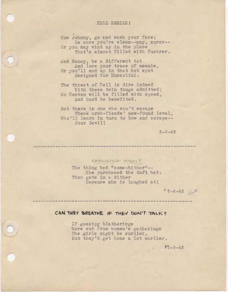 If gossipy blatheringsWere cut from women’s gatheringsThe girls might be surlier,But they’d get home a lot earlier.