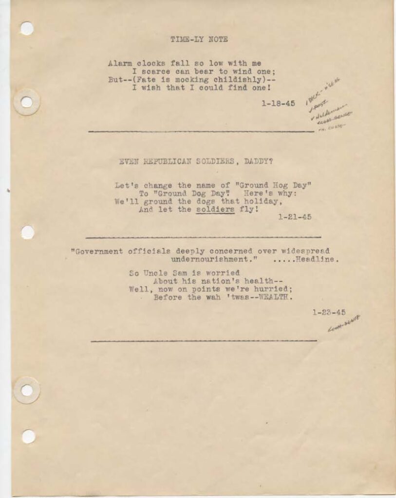 Let’s change the name of “Ground Hog Day”To “Ground Dog Day”! Here’s why:We’ll ground the dogs that holiday,And let the soldiers fly!