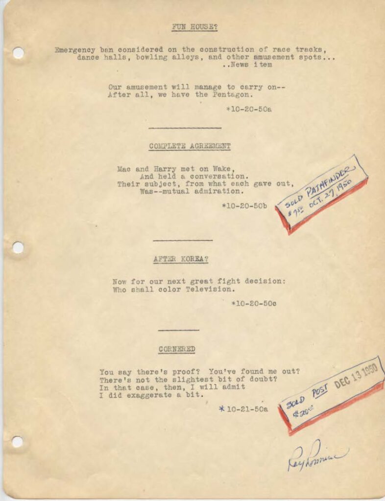 by Ray Romine Friday, October 20, 1950