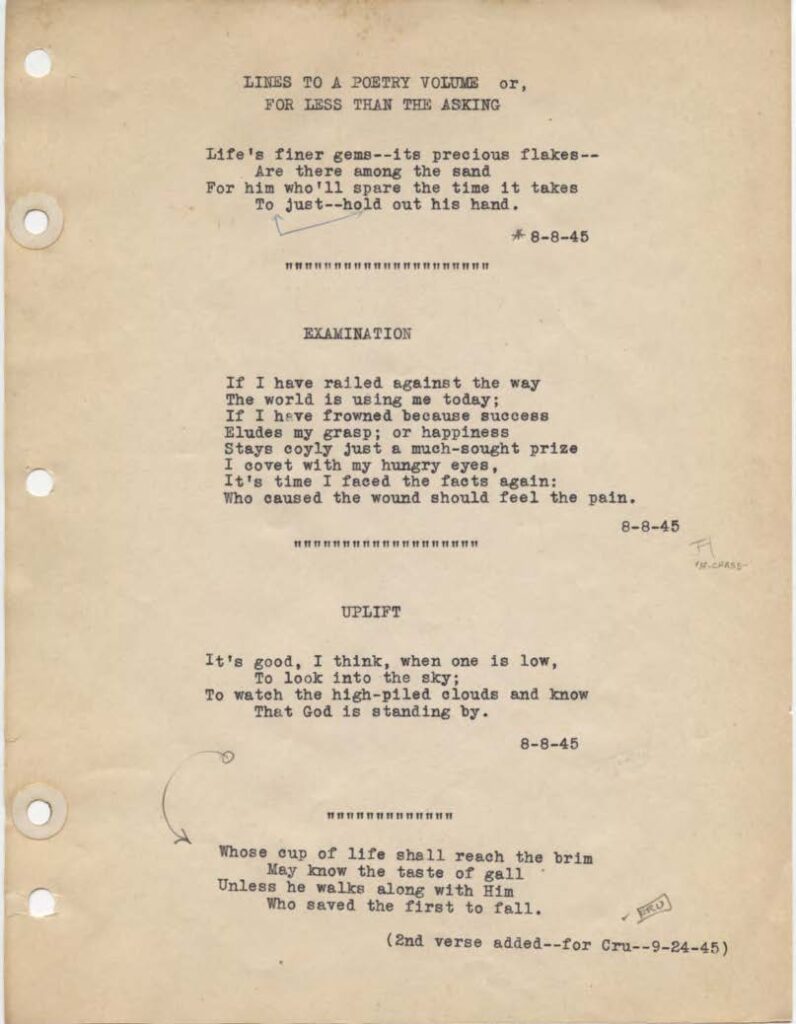 Life’s finer gems- -its precious flakes–Are there among the sandFor him who’ll spare the time it takesTo Just–hold out his hand.