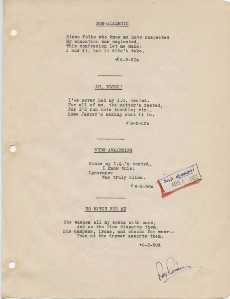 Since folks who know me have suspectedMy education was neglected,This confession let me make:I had it, but it didn’t take.