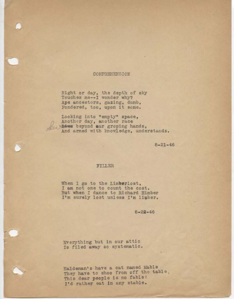 Haldeman’s have a cat named MableThey have to shoo from off the table,This dear people is no fable:I’d rather eat in any stable.