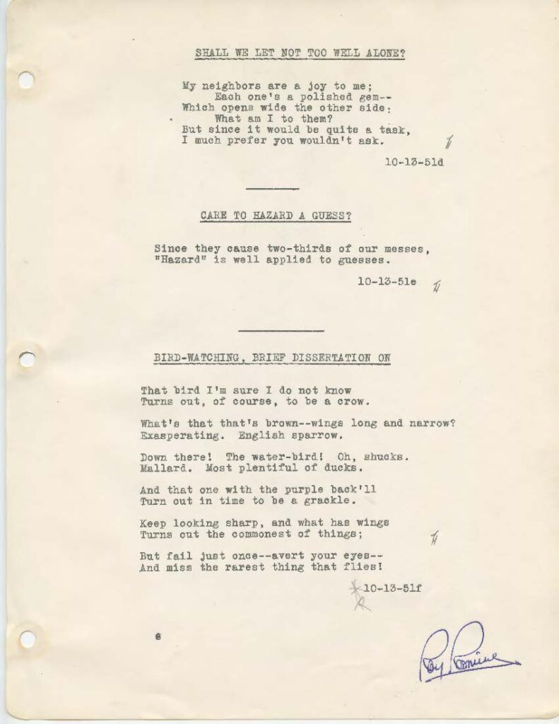 by Ray Romine Saturday, October 13, 1951