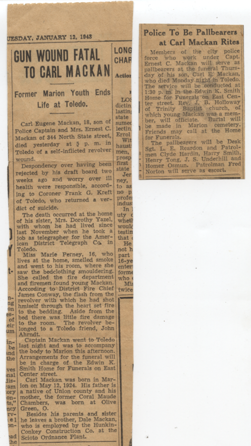 Mary Hemmerly & Carl Mackan at 229 E Fairground Street, Marion, Ohio in 1941